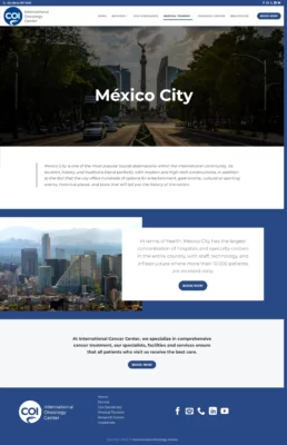 El sitio web COI, es un sitio que ofrece servicios para combatir el cancer, donde se pensó en tener un diseño amigable y profesional, con colores acorde a su marca. Transmitiendo un mensaje de positividad y apoyo. La interfaz es intuitiva y accesible para que los usuarios puedan navegar fácilmente y encontrar la información que buscan.